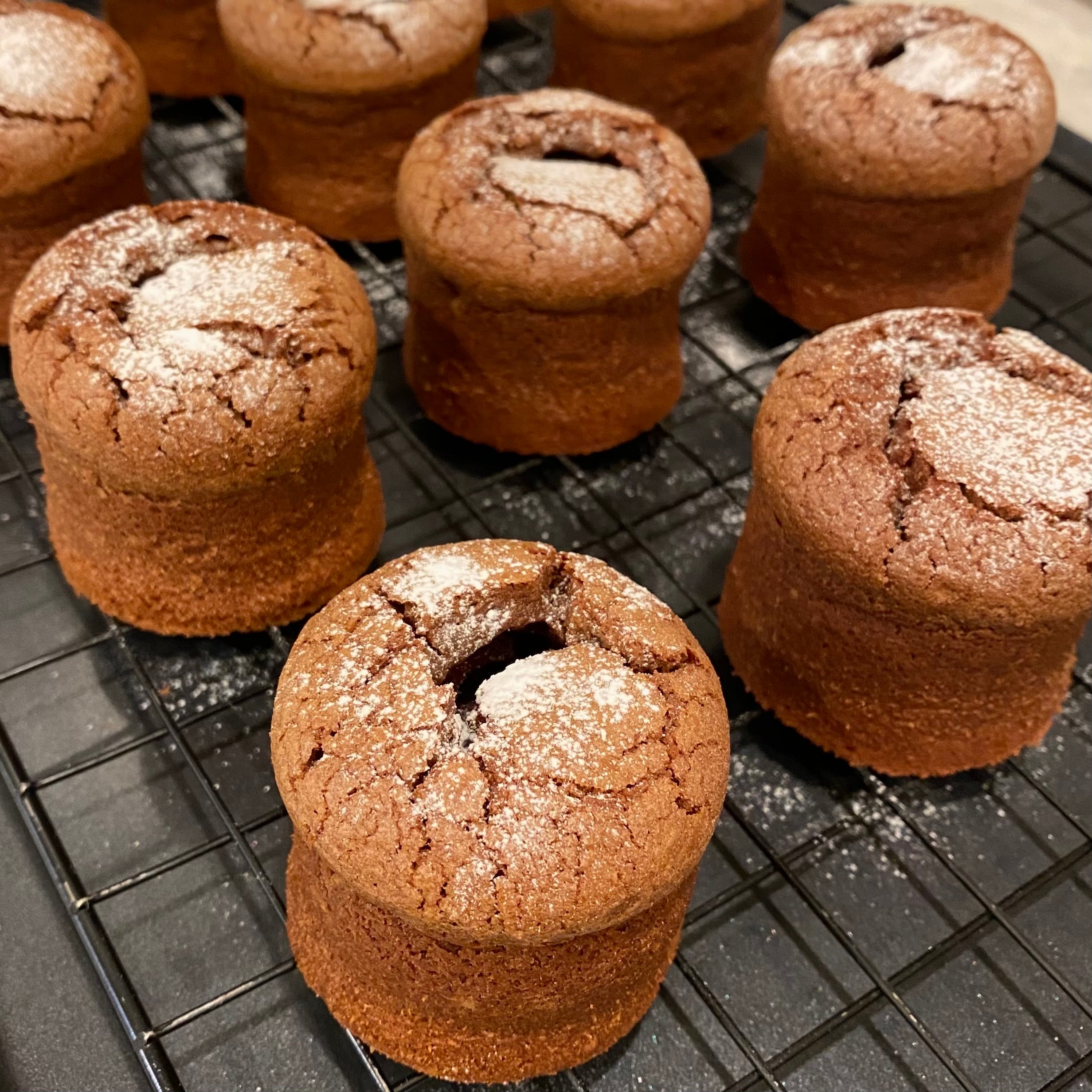 チョコレートを2種類使い、さっくりのした生地の中に、チョコレートガナッシュを入れて焼き上げました。